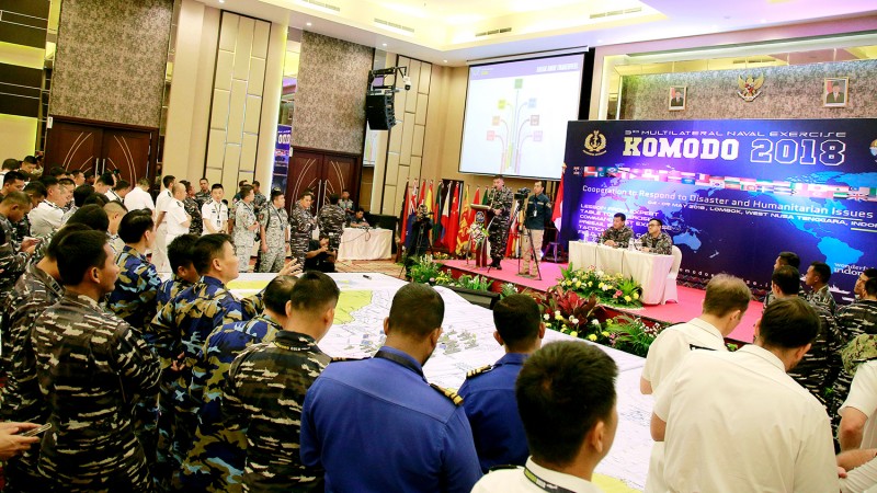 Ngày 7-5, tại đảo Lombok, Indonesia, Diễn tập Hải quân đa phương Komodo 2018 (MNEK 2018) tiếp tục với các nội dung: Diễn tập trên hải đồ, sa bàn và thông qua kế hoạch đi biển.