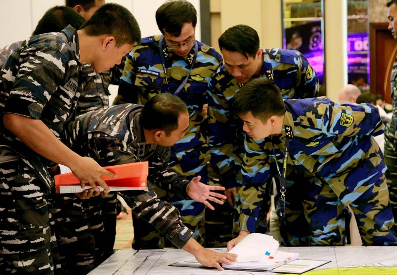 Quang cảnh diễn tập trên hải đồ, sa bàn MNEK 2018