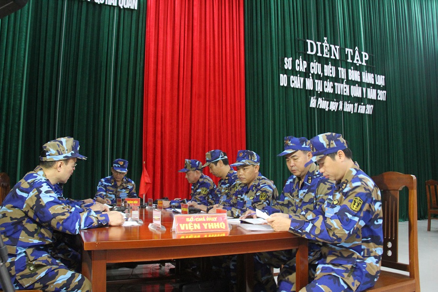 Tham dự diễn tập còn có thủ trưởng các cơ quan chức năng Bộ Quốc phòng, cơ quan chức năng Bộ Tư lệnh Hải quân, cơ quan quân y các quân khu khu vực phía Bắc. Trực tiếp tham gia diễn tập có 450 cán bộ, chiến sĩ Quân chủng Hải quân, Học viện quân y, Viện Bỏng quốc gia.