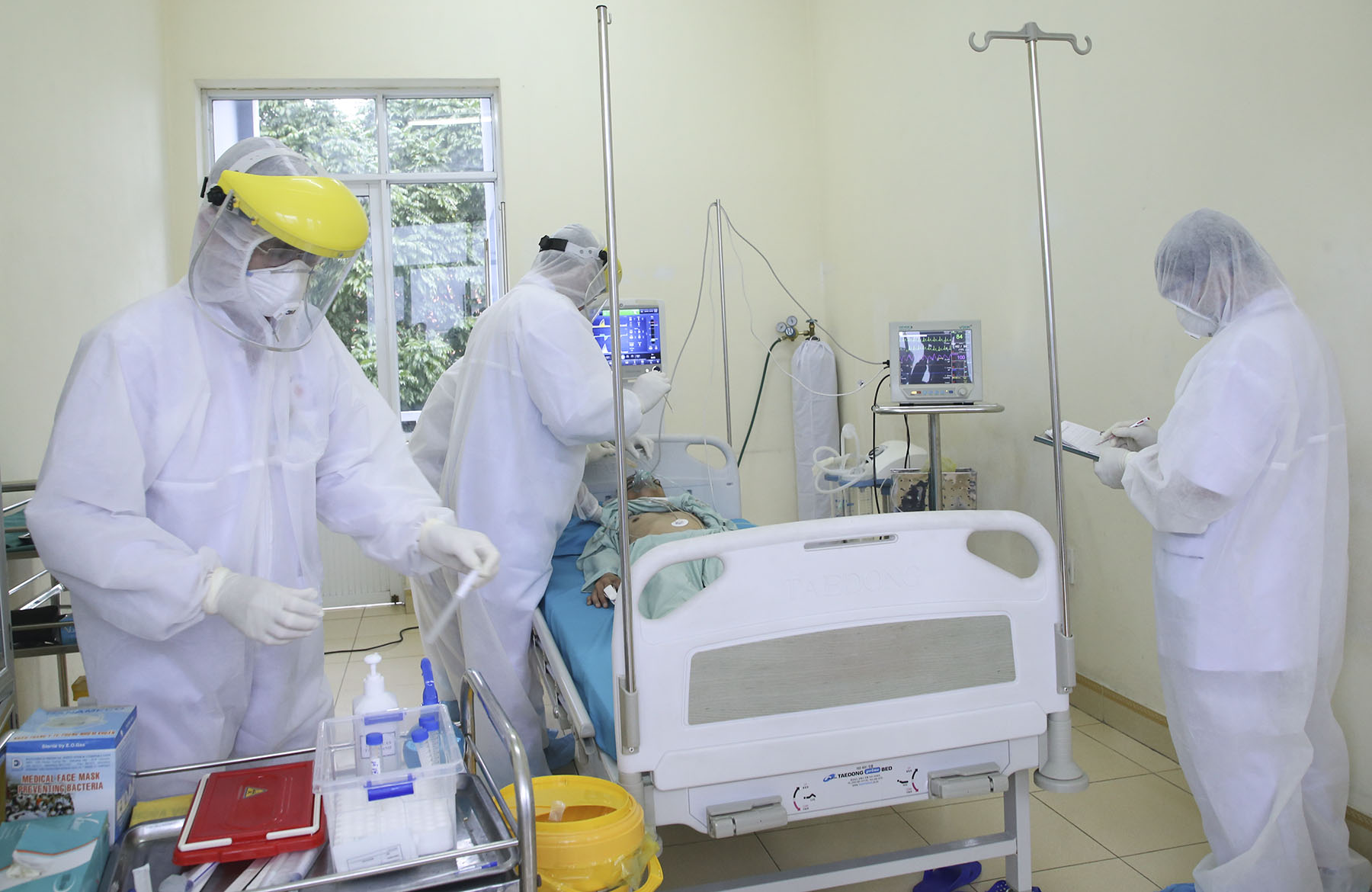 Các y bác sĩ của Viện Y học Hải quân lấy mẫu bệnh phẩm của người nghi nhiễm Covid-19