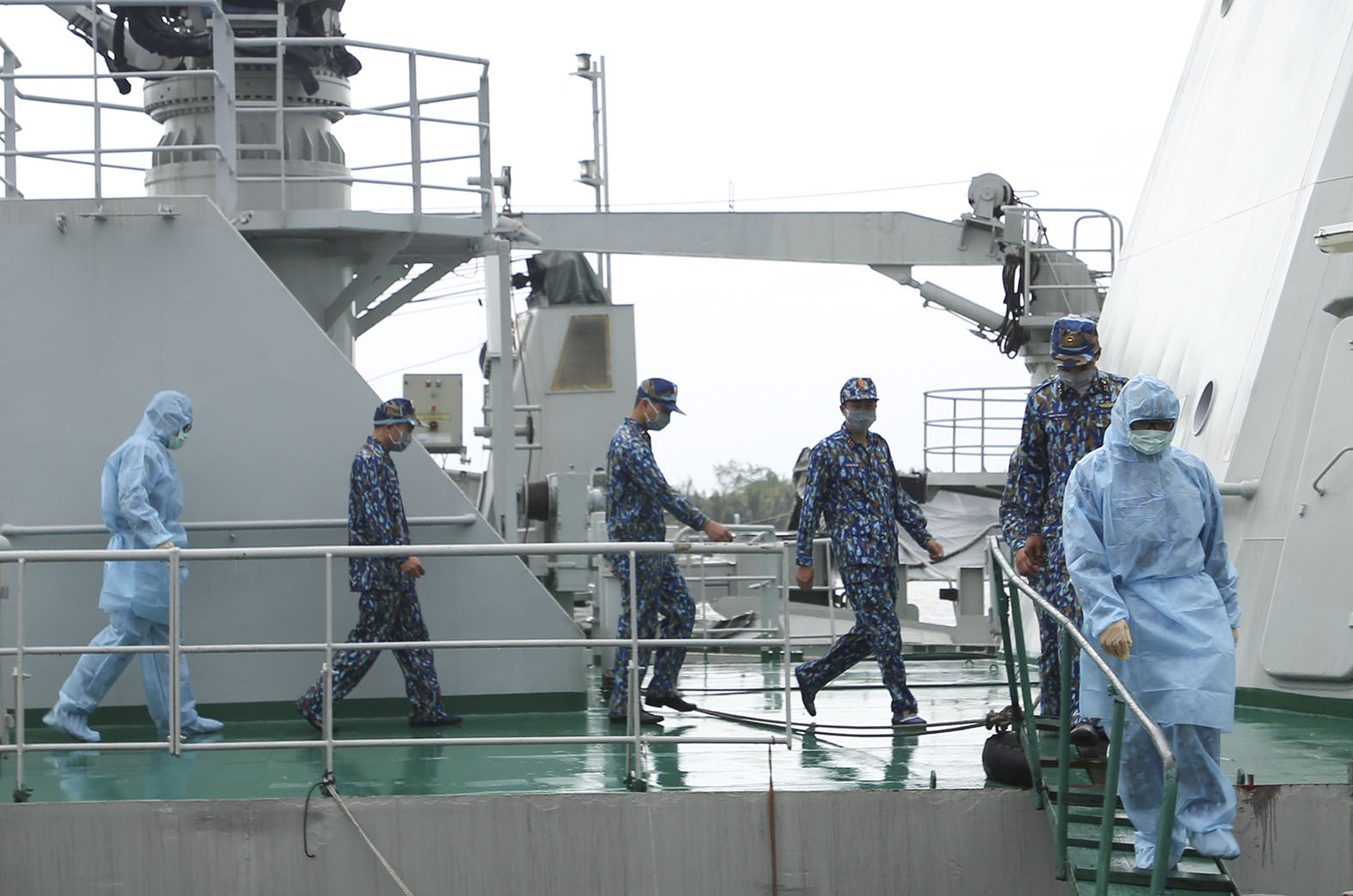 Thuyền trưởng Tàu X đã nhanh chóng cho số quân nhân của tàu đeo khẩu trang, 2 đồng chí có biểu hiện sốt được cách ly tại phòng riêng. Ban chỉ đạo phòng chống dịch Covid-19 của Đoàn Đo đạc biên vẽ hải đồ và nghiên cứu biển sau khi báo cáo Ban chỉ đạo Quân chủng về tình hình sức khỏe các quân nhân trên tàu đã chỉ đạo toàn tàu đeo khẩu trang và tiến hành các biện pháp phòng chống lây nhiễm.