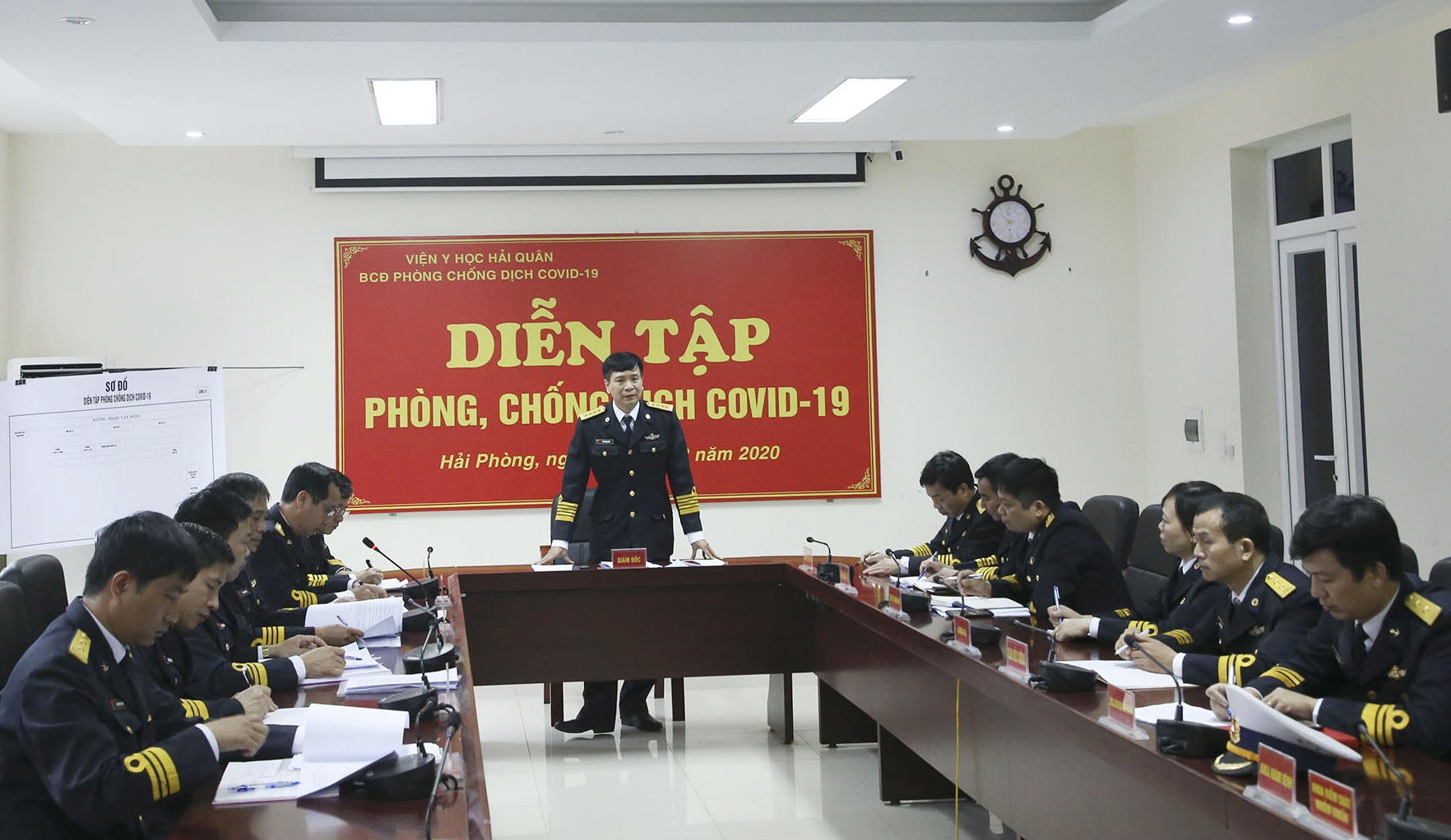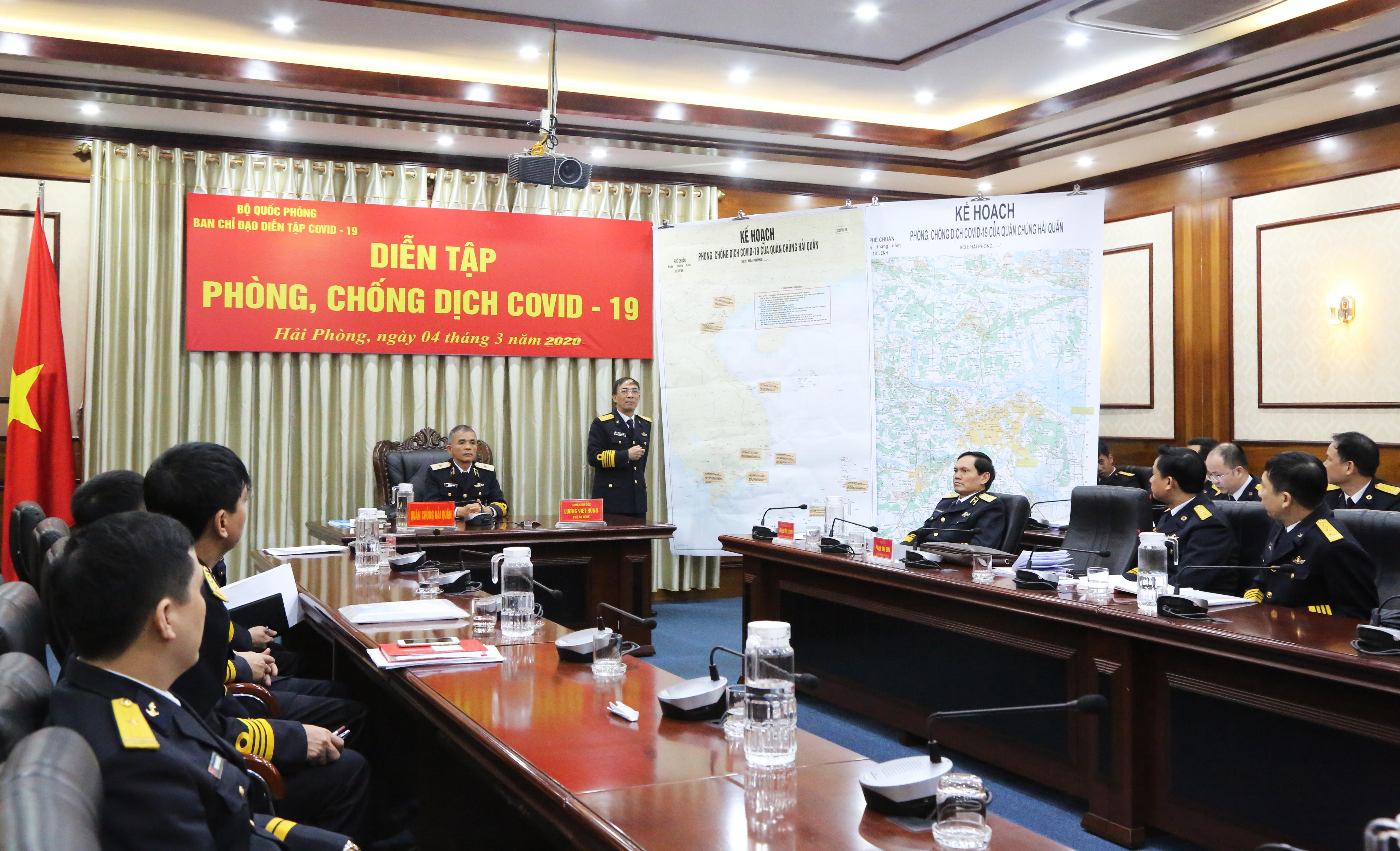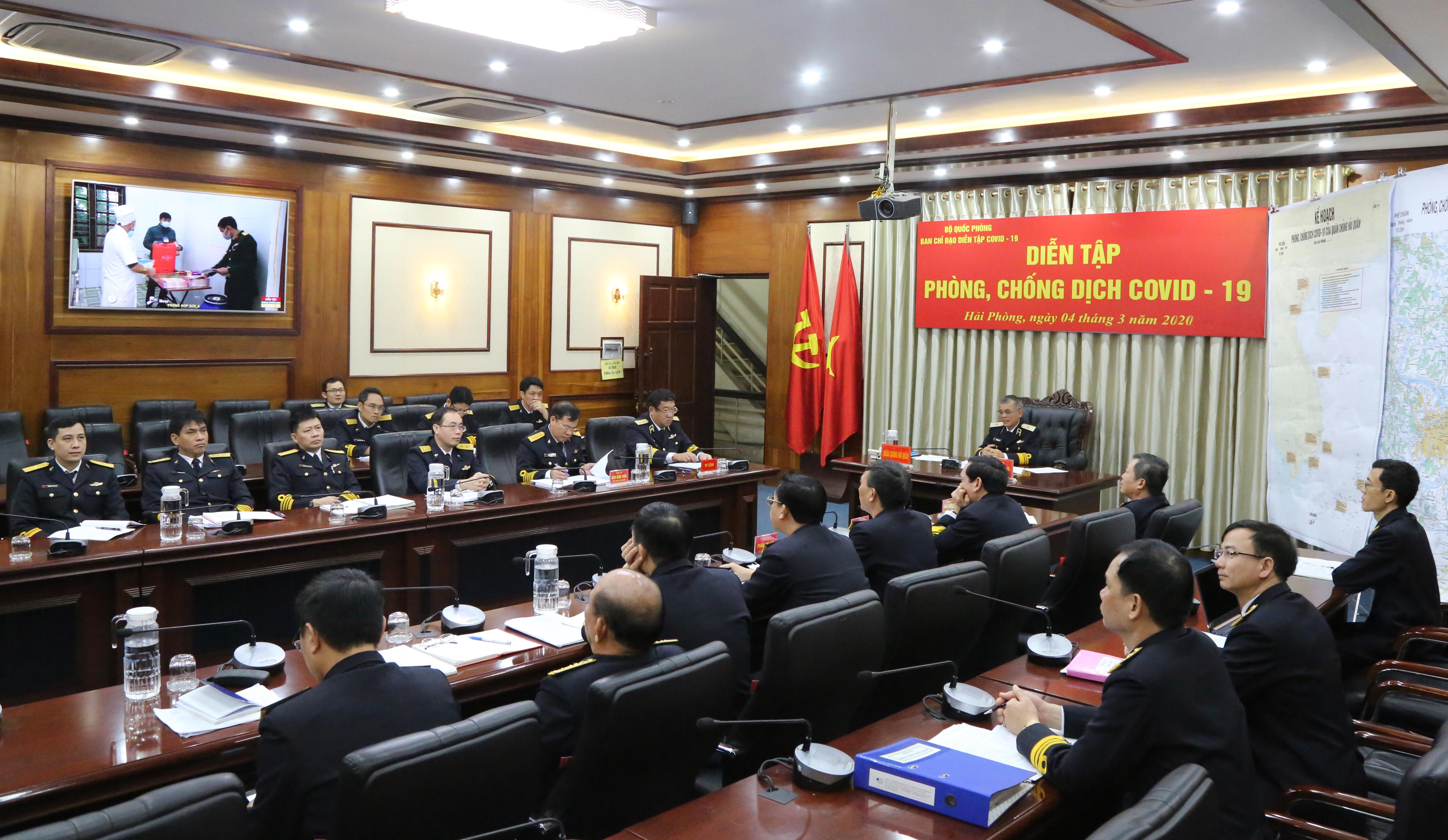 Phần thực binh của Quân chủng Hải quân với tình huống giả định là tại Đoàn Đo đạc biên vẽ hải đồ và nghiên cứu biển, Bộ Tham mưu Hải quân có 2 quân nhân thuộc Tàu X (Tàu này biên chế 10 người) đột nhiên cùng có biểu hiện sốt, ho, đau họng, chảy nước mũi. Trước đó 2 ngày, một trong 2 quân nhân có về quê nghỉ tranh thủ có tiếp xúc gần với người nghi nhiễm Covid-19.