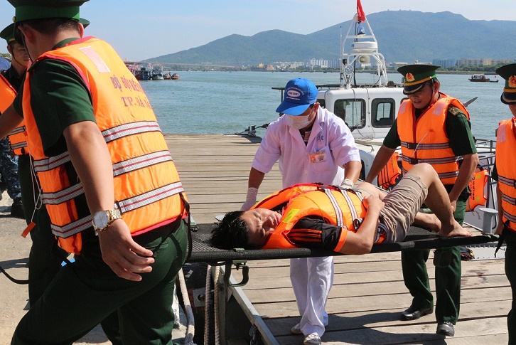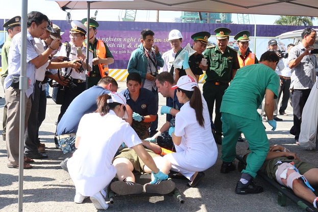 Các lực lượng y, bác sĩ Việt Nam và Tàu Mercy tổ chức cấp cứu người bị nạn