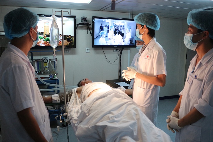 Các y, bác sĩ trên Tàu 561 hội chẩn trực tuyến với Bệnh viện 175 để chẩn đoán, chữa trị cho bệnh nhân