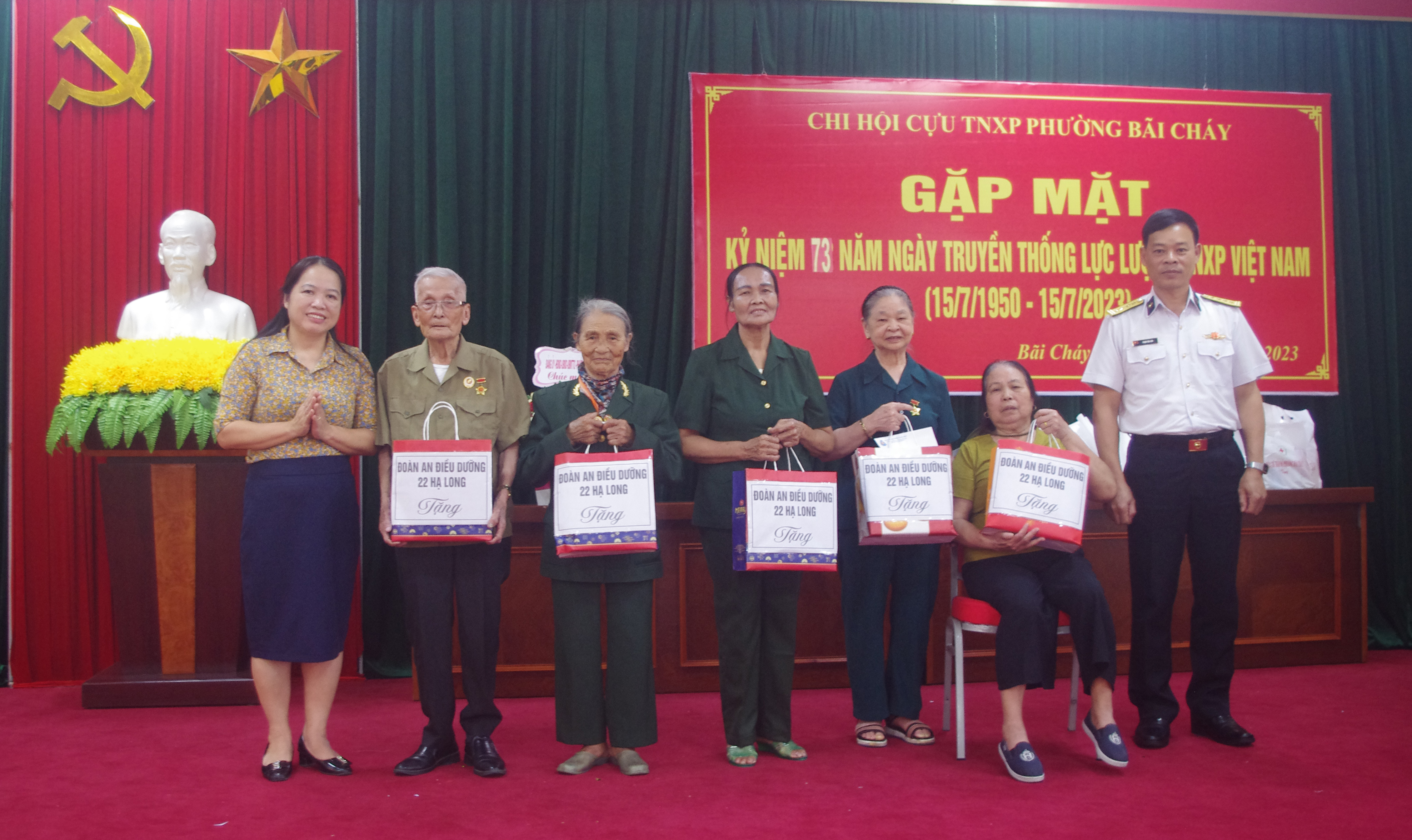 Ngày 13/7, Đoàn An điều dưỡng 22 Hạ Long, Cục Chính trị Hải quân phối hợp với phường Bãi Cháy, TP. Hạ Long, tỉnh Quảng Ninh tổ chức thăm, tặng quà các cựu thanh niên xung phong trên địa bàn phường.