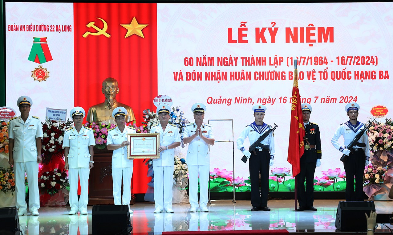 Sáng 16/7, tại Quảng Ninh, Đoàn An điều dưỡng 22 Hạ Long, Cục Chính trị Hải quân tổ chức Lễ kỷ niệm 60 năm Ngày thành lập (16/7/1964 – 16/7/2024) và đón nhận Huân chương Bảo vệ Tổ quốc hạng Ba lần thứ hai.