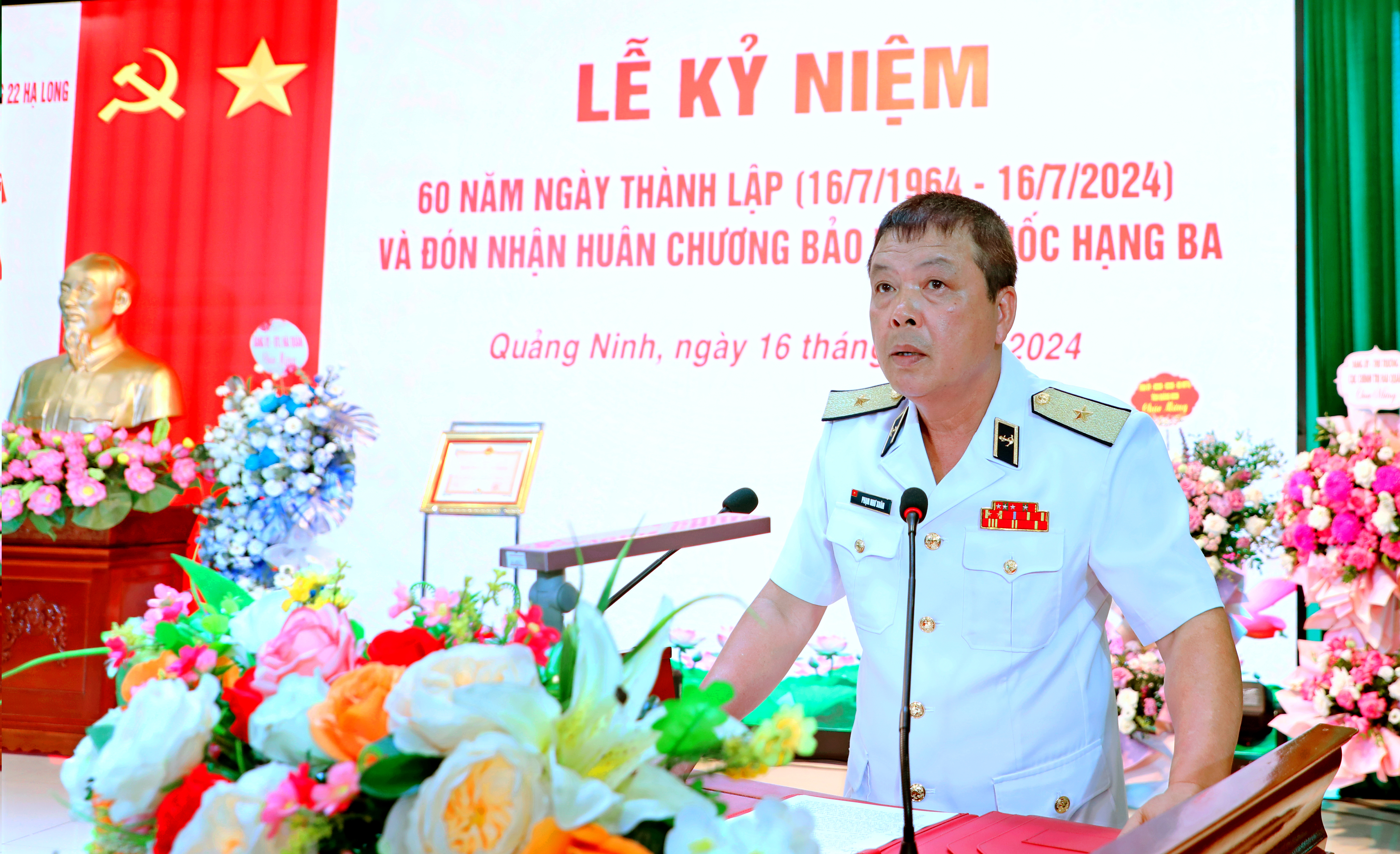 Phát biểu tại buổi lễ, Chuẩn Đô đốc Phạm Như Xuân chúc mừng, biểu dương thành tích cán bộ, nhân viên, chiến sĩ Đoàn An điều dưỡng 22 Hạ Long đã đạt được trong những năm qua.
