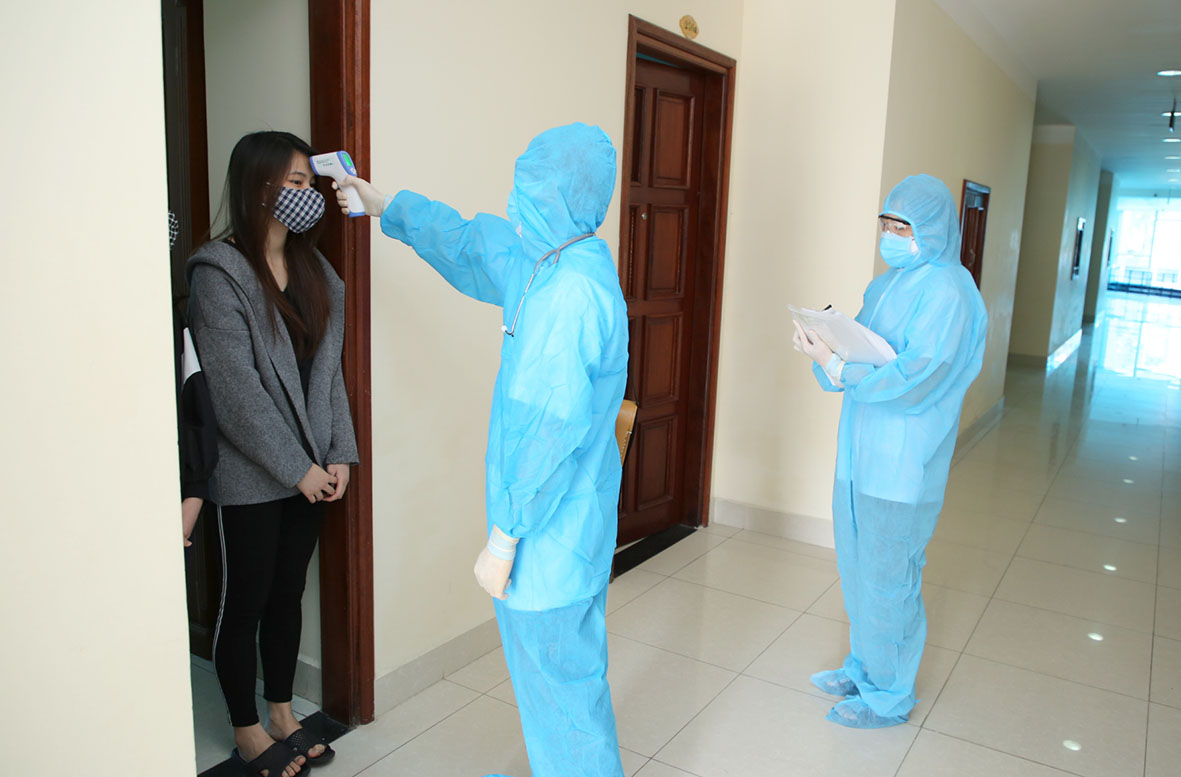 Hàng ngày, quân y Đoàn 22 đến từng phòng đo thân nhiệt công dân