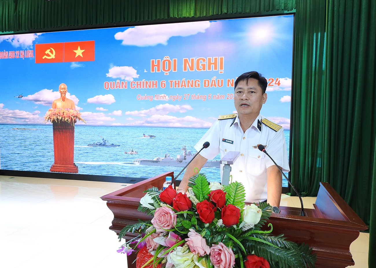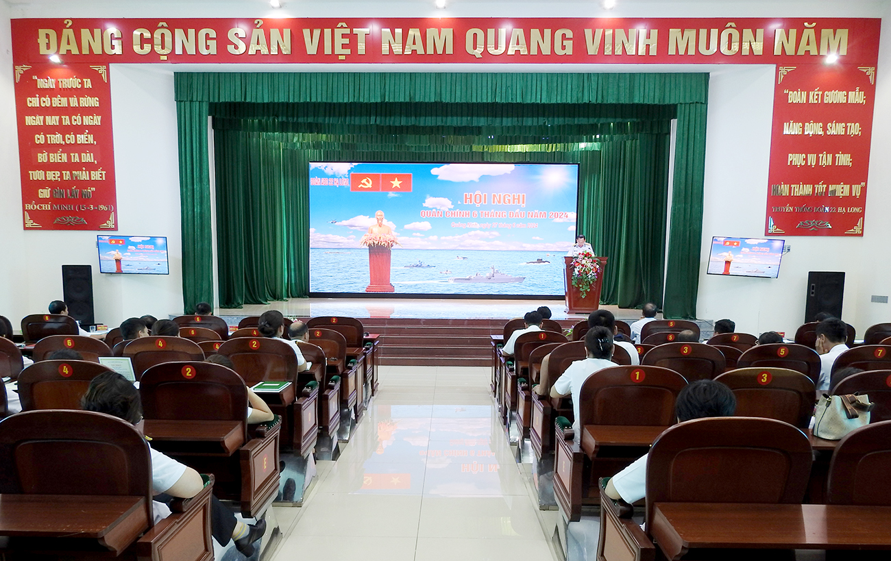 Ngày 27/6, tại Quảng Ninh, Đoàn An điều dưỡng 22 Hạ Long, Cục Chính trị Hải quân tổ chức Hội nghị quân chính 6 tháng đầu năm 2024. Đại tá Hồ Thanh Hoàn, Phó Chủ nhiệm Chính trị Hải quân dự và chỉ đạo.