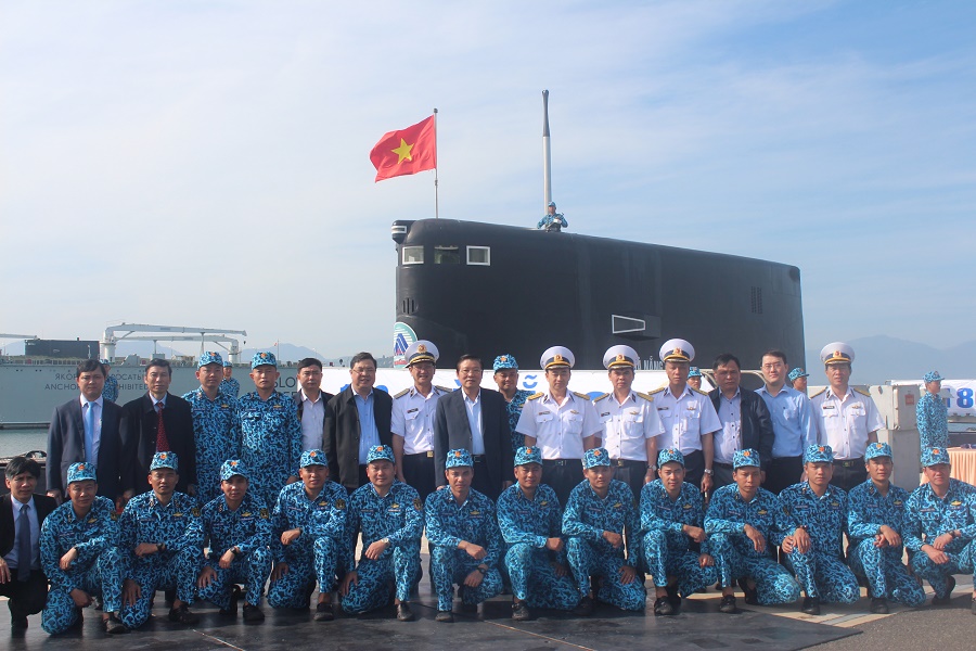 Đoàn chụp ảnh lưu niệm với cán bộ, thủy thủ tàu ngầm