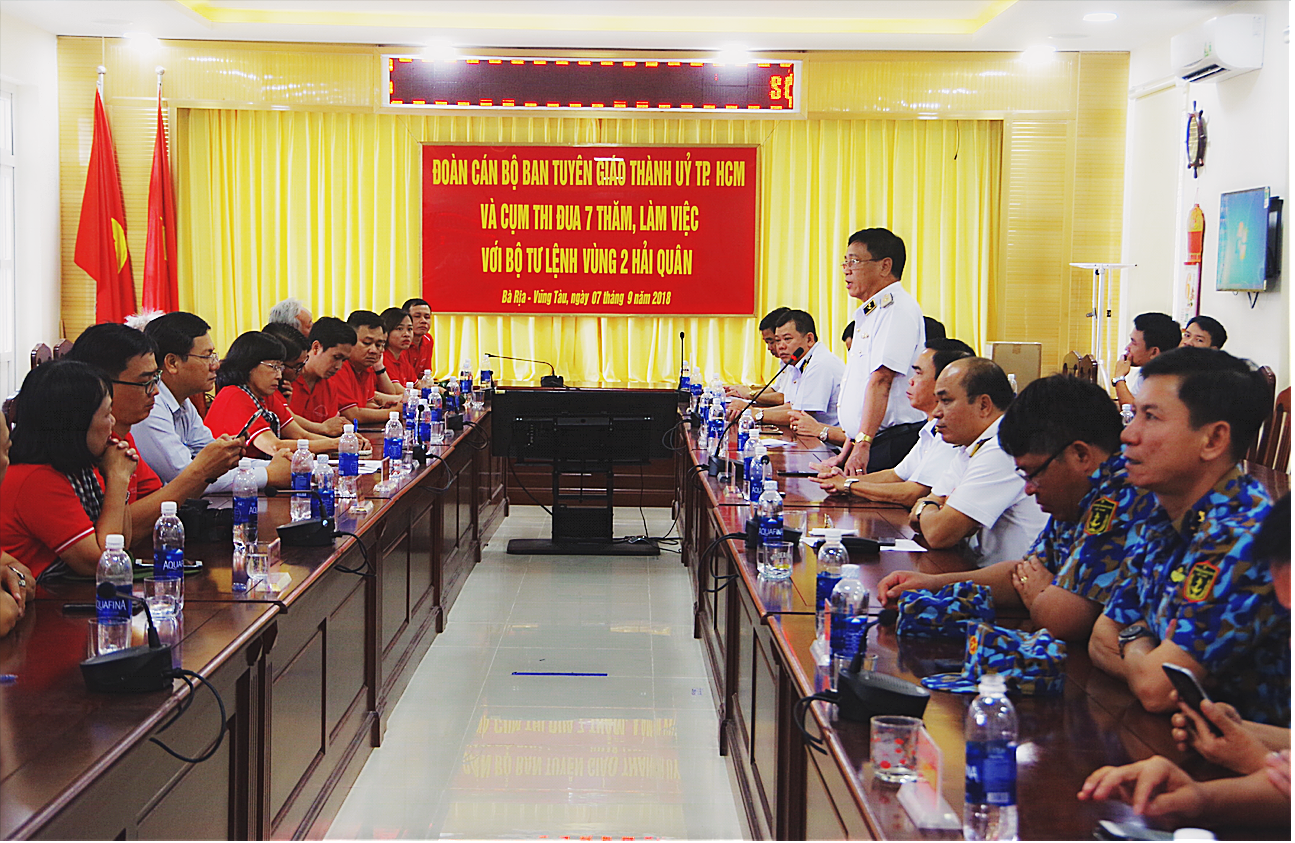 Chiều 7-9, tại Căn cứ Quân sự Hải quân Long Sơn, (Thành phố Vũng Tàu), đoàn cán bộ Ban Tuyên giáo Thành ủy TP. Hồ Chí Minh và Cụm thi đua 7 đã đến thăm, làm việc với Vùng 2 Hải quân. Chuẩn Đô đốc Nguyễn Phong Cảnh, Bí thư Đảng ủy, Chính ủy Vùng 2 chủ trì tiếp đoàn.