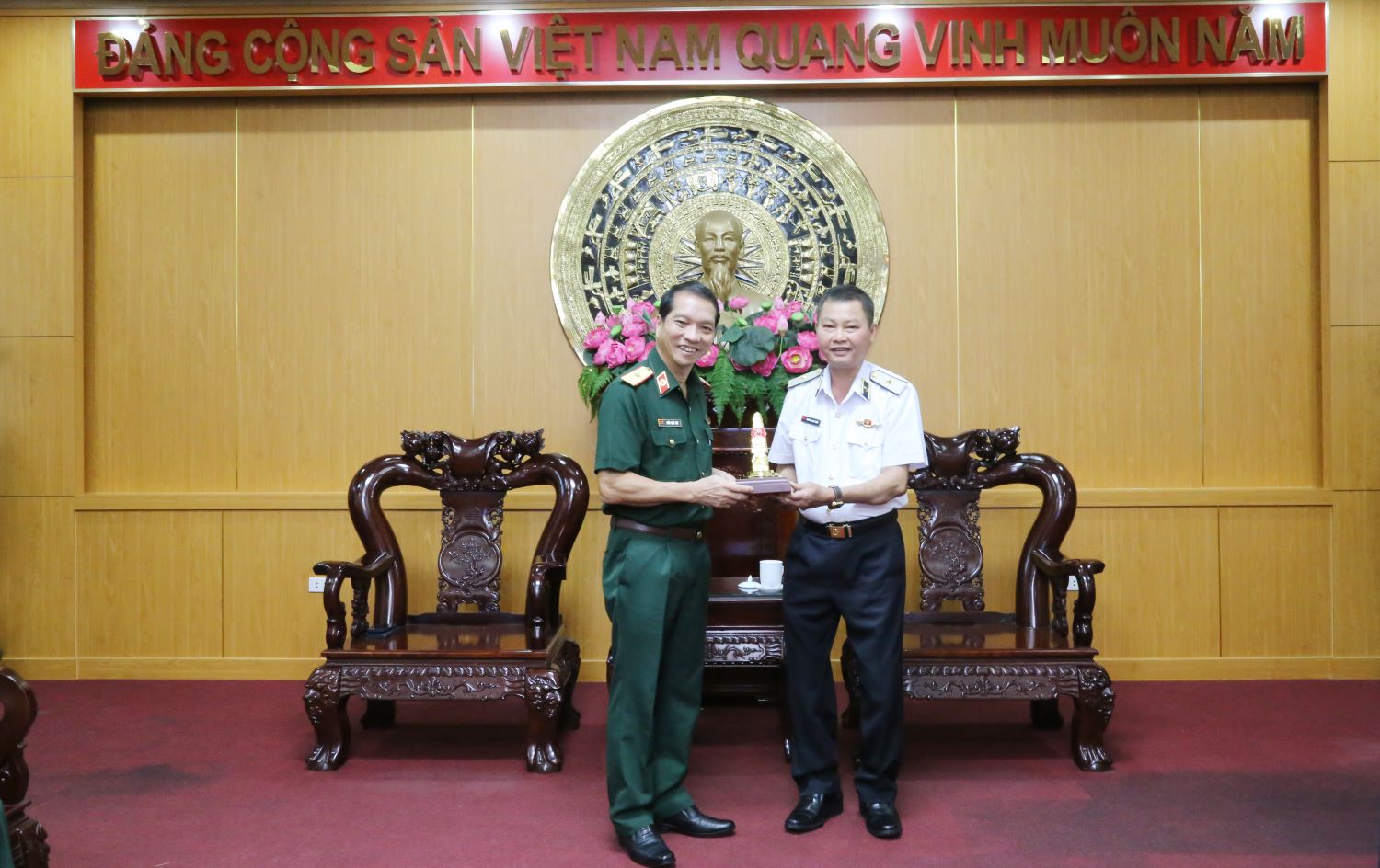 Chuẩn Đô đốc Nguyễn Anh Tuấn tặng Thiếu tướng Trần Quốc Việt quà lưu niệm