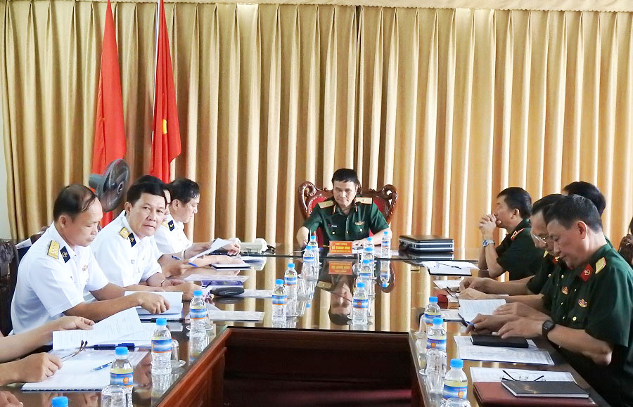Quang cảnh buổi làm việc tại Sở chỉ huy Lữ đoàn