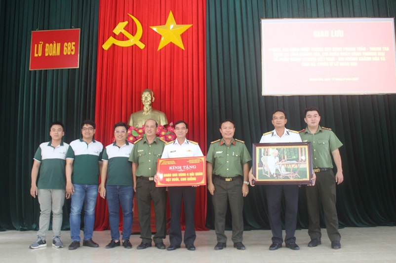 Ngày 17/6, tại TP. Cam Ranh, tỉnh Khánh Hòa, đoàn cán bộ của Phòng Xây dựng phong trào và Thanh tra Công an tỉnh Khánh Hòa, Chi đoàn Ngân hàng Thương mại cổ phần Ngoại thương Việt Nam (Chi nhánh Khánh Hòa) do Thượng tá Nguyễn Văn Phương, Trưởng phòng Xây dựng phong trào Công an tỉnh Khánh Hòa làm trưởng đoàn đến thăm và giao lưu với cán bộ, chiến sĩ Lữ đoàn 685, Vùng 4 Hải quân.