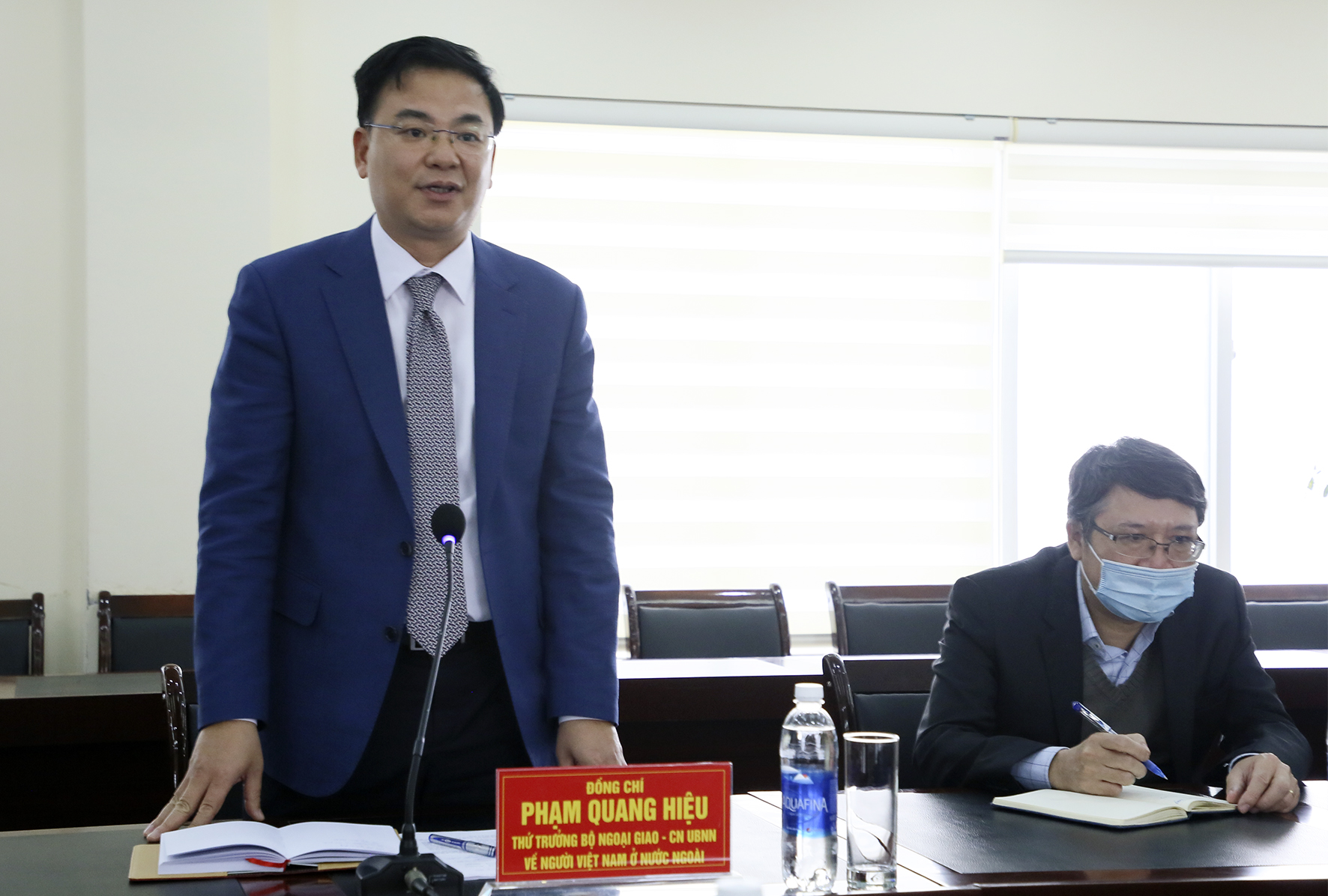 Chiều 21/12, tại TP. Hải Phòng, đoàn cán bộ của Ủy ban Nhà nước về người Việt Nam ở nước ngoài, Bộ Ngoại giao do đồng chí Phạm Quang Hiệu, Ủy viên Ban cán sự Đảng, Thứ trưởng Bộ Ngoại giao, Chủ nhiệm Ủy ban Nhà nước về người Việt Nam ở nước ngoài làm trưởng đoàn đã đến làm việc với Bộ Tư lệnh Hải quân. Chuẩn Đô đốc Phan Tuấn Hùng, Phó Tư lệnh Hải quân chủ trì tiếp đoàn. Tham gia có thủ trưởng Bộ Tham mưu, Cục Chính trị, Cục Hậu cần, Cục Kỹ thuật.