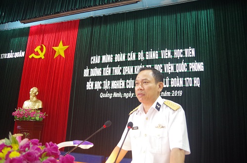 Sáng 27-9, tại Quảng Ninh, đoàn cán bộ, giảng viên, học viên Lớp Bồi dưỡng kiến thức Quốc phòng-an ninh Khóa 77, Học viện Quốc phòng do Thiếu tướng Đào Tuấn Anh, Phó Giám đốc Học viện Quốc phòng dẫn đầu đến học tập, nghiên cứu thực tế tại Lữ đoàn 170, Vùng 1 Hải quân.
