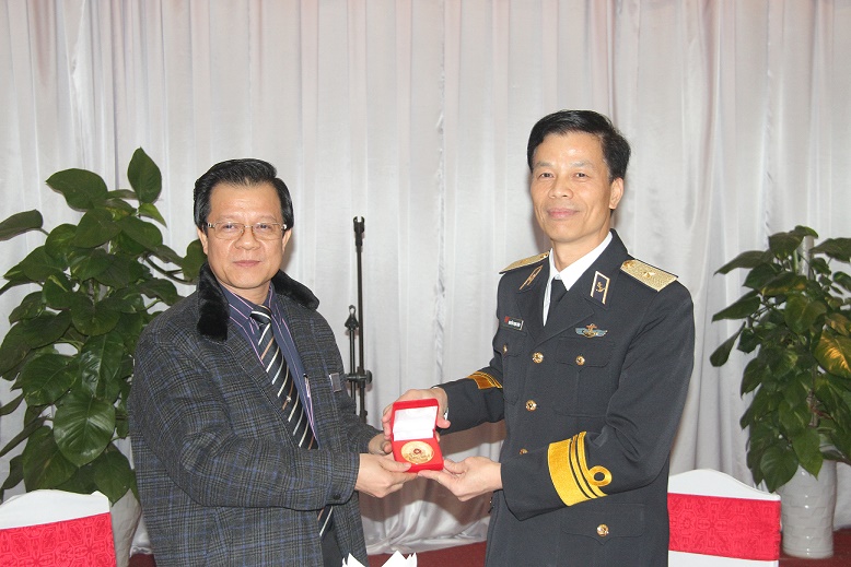 Chuẩn Đô đốc Nguyễn Trọng Bình tặng Biểu trưng Hải quân cho đại diện Lớp bồi dưỡng kiến thức quốc phòng-an ninh Khoá 64.