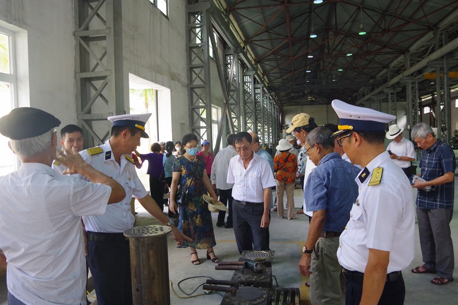 Đoàn cán bộ hưu trí đã xem phim tư liệu về quá trình xây dựng, phát triển, trưởng thành của Cục Kỹ thuật Hải quân và Nhà máy X48 và tham quan các xưởng sửa chữa.