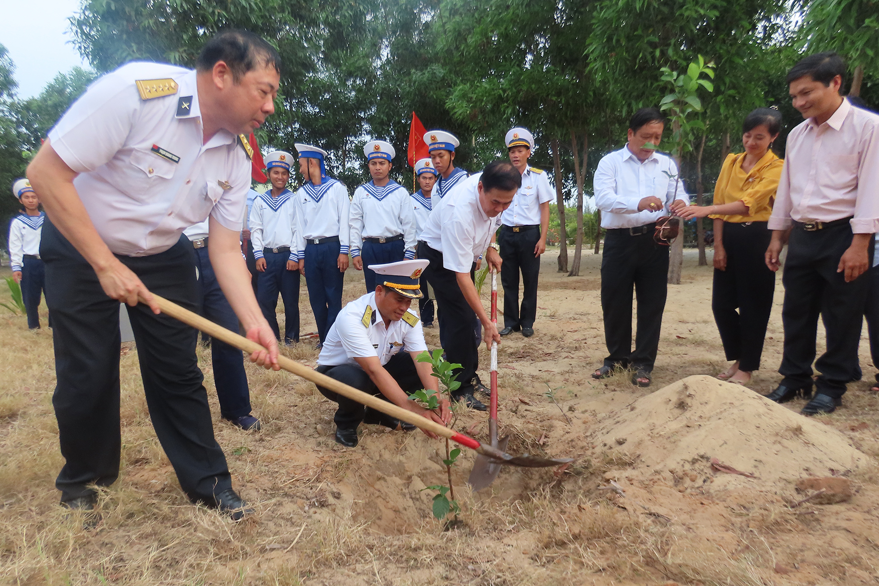 Dịp này, đoàn cán bộ, học viên tỉnh Bến Tre đã tặng Lữ đoàn 957 hơn 200 cây giống ăn quả.