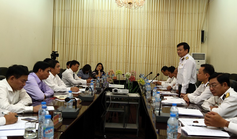 Thiếu tướng Trần Hoài Trung, Bí thư Đảng ủy, Chính ủy Hải quân phát biểu tại buổi làm việc