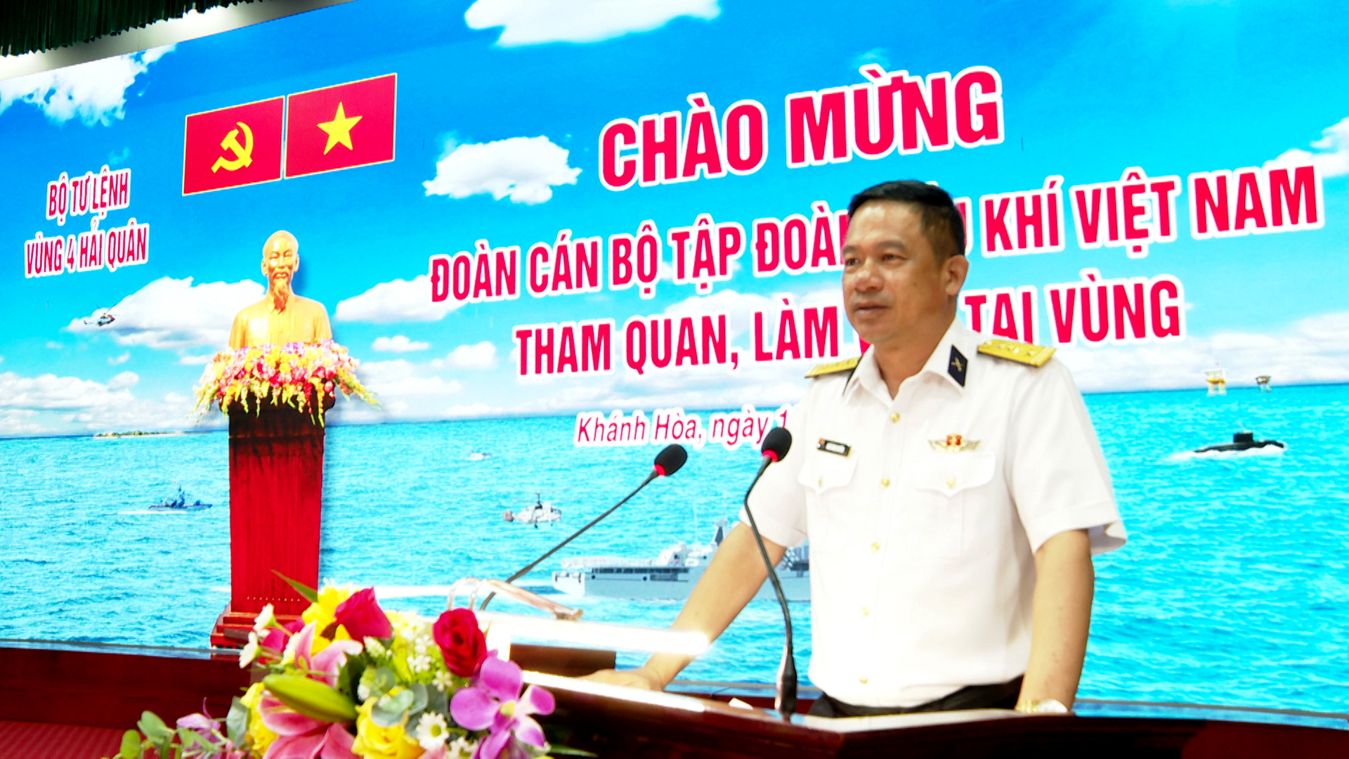 Đồng chí Nguyễn Văn Hậu, thành viên Hội đồng quản trị Tập đoàn Dầu khí Việt Nam, trưởng đoàn công tác cảm ơn sự đón tiếp chân thành, nồng ấm của cán bộ, chiến sĩ Vùng 4 Hải quân đồng thời khẳng định qua chuyến thăm này đoàn đã hiểu biết sâu sắc hơn về truyền thống vẻ vang, lịch sử xây dựng, trưởng thành và phát triển của Hải quân Nhân dân Việt Nam cũng như Vùng 4.