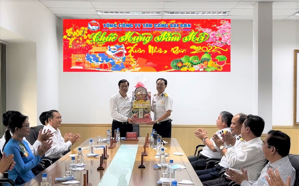 Đồng chí Phạm Văn Hiểu chúc tết cán bộ, nhân viên, người lao động Chi nhánh Tân cảng Đồng bằng sông Cửu Long