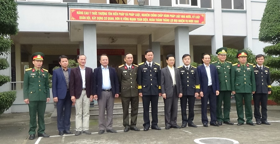 Các đại biểu chụp ảnh lưu niệm tại đơn vị