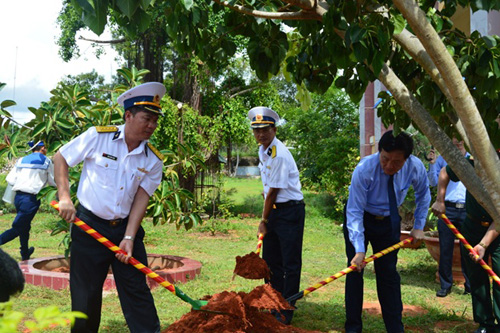 Đồng chí Nguyễn Hòa Bình trồng cây lưu niệm tại Lữ đoàn