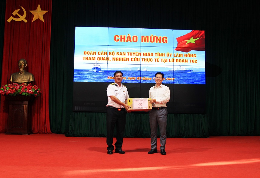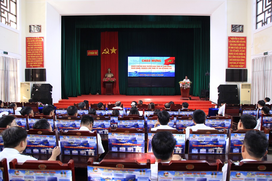 Tại Lữ đoàn 162, đoàn công tác đã xem phim truyền thống về Hải quân Nhân dân Việt Nam và Vùng 4; nghe thông tin mới nhất về tình hình Biển Đông thời gian gần đây và nhiệm vụ bảo vệ chủ quyền biển, đảo hiện nay.