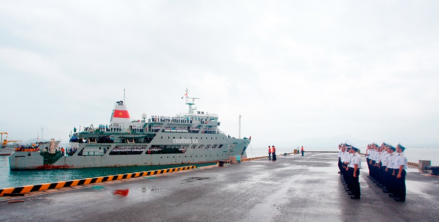 Sáng 22-1, các tàu chở đoàn đi chúc Tết quân và dân huyện đảo Trường Sa, tỉnh Khánh Hòa đã cập cảng quân sự Cam Ranh an toàn.