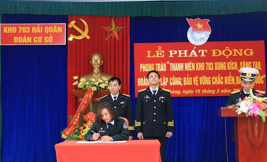 Tại lễ phát động, đại diện các chi đoàn trong Đoàn cơ sở Kho 703 đã ký kết giao ước thi đua.