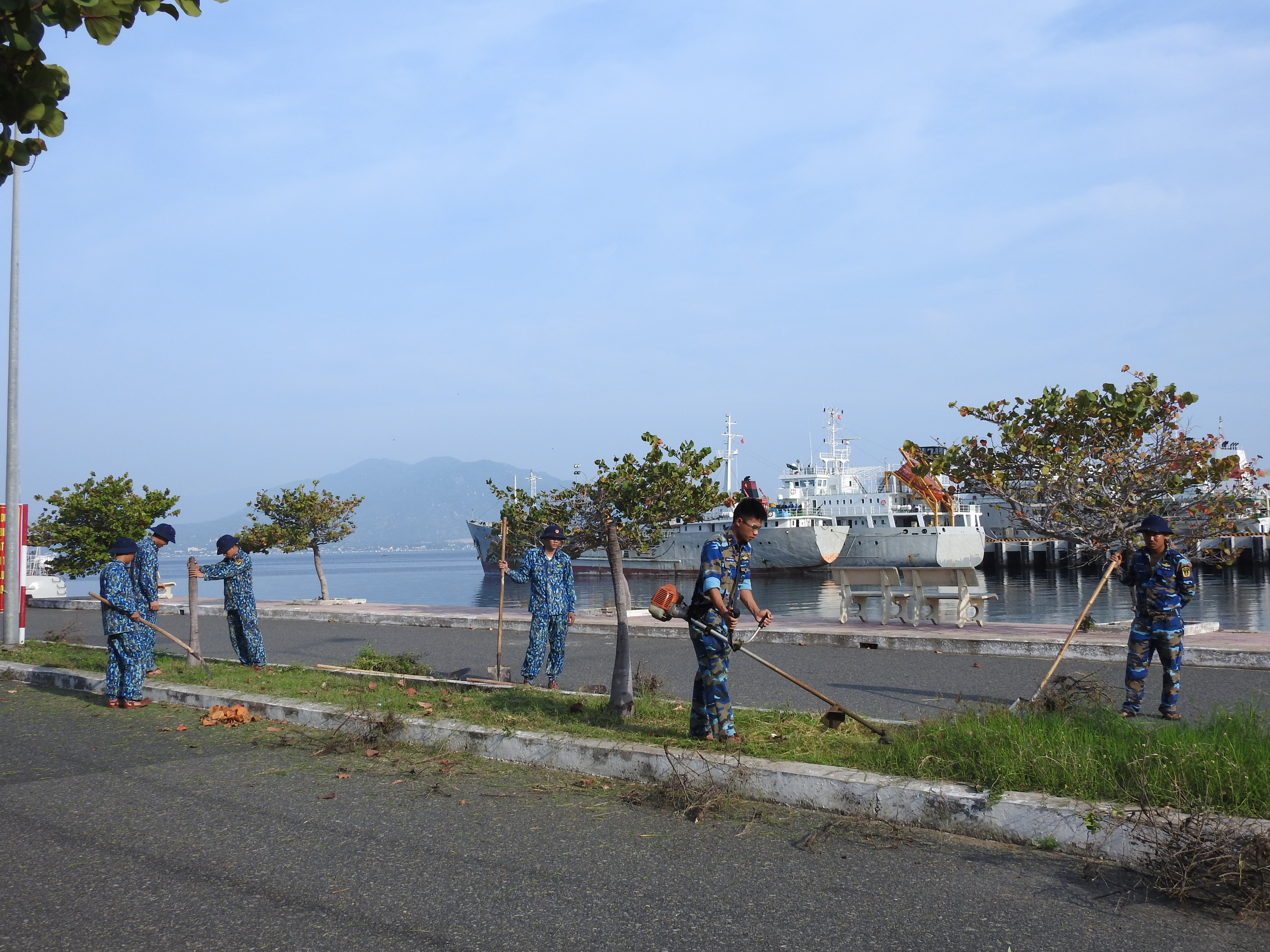 Cán bộ, đoàn viên thanh niên Lữ đoàn tổng dọn vệ sinh khu vực cầu cảng