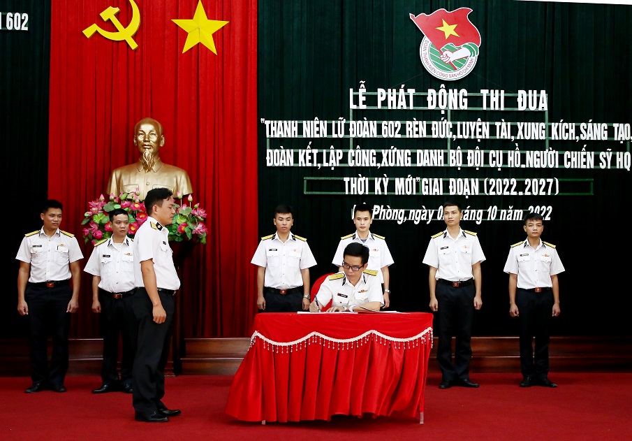 Sáng 3/10, tại Hải Phòng, Đoàn cơ sở Lữ đoàn 602, Bộ Tham mưu Hải quân tổ chức phát động phong trào thi đua “Thanh niên Lữ đoàn 602 rèn đức, luyện tài; xung kích, sáng tạo; đoàn kết, lập công; xứng danh Bộ đội Cụ Hồ-Người chiến sĩ Hải quân thời kỳ mới” giai đoạn 2022-2027.
