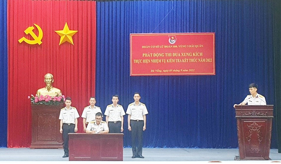 Tối 5/9, tại Đà Nẵng, Đoàn cơ sở Lữ đoàn 680, Vùng 3 Hải quân tổ chức phát động thi đua xung kích thực hiện nhiệm vụ kiểm tra kết thúc năm 2022 với chủ đề “Đoàn kết, xung kích, quyết thắng”.