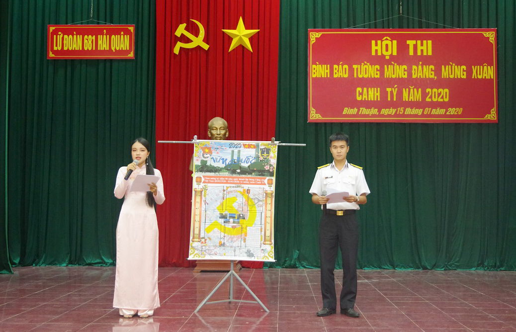 Tối 15-1, tại TP. Phan Thiết, tỉnh Bình Thuận, Đoàn cơ sở Lữ đoàn 681, Vùng 2 Hải quân tổ chức Hội thi bình báo tường “Mừng Đảng, mừng Xuân Canh Tý năm 2020”.