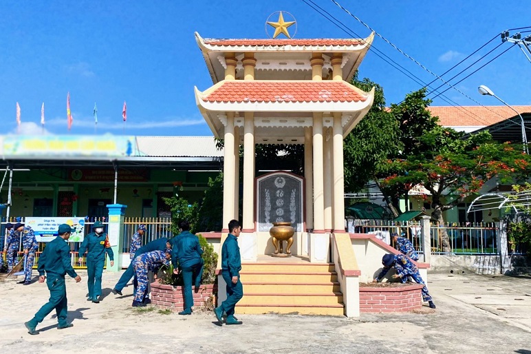 Sáng 22/7, tại TP. Cam Ranh, tỉnh Khánh Hòa, Đoàn cơ sở Tiểu đoàn 458, Vùng 4 Hải quân phối hợp với Đoàn phường Cam Nghĩa tổ chức tu sửa nghĩa trang liệt sĩ của địa phương nhân kỷ niệm 75 năm Ngày thương binh, liệt sĩ (27/7/1947 - 27/7/2022).