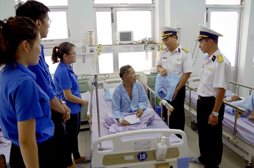 Cán bộ, đoàn viên Đoàn cơ sở Trung đoàn 196 và đơn vị kết nghĩa tặng quà bệnh nhân nghèo tại Bệnh viện đa khoa Cam Ranh