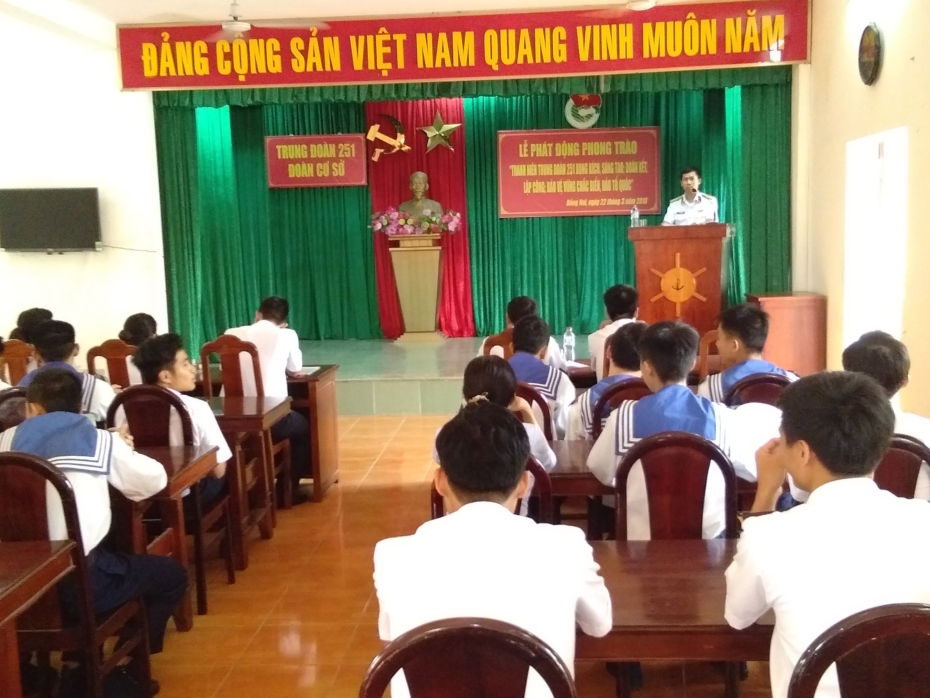 Chiều 22-3, tại TP. Biên Hoà, tỉnh Đồng Nai, Đoàn cơ sở Trung đoàn 251, Vùng 2 Hải quân đã tổ chức phát động phong trào “Thanh niên Trung đoàn 251 xung kích, sáng tạo; đoàn kết, lập công; bảo vệ vững chắc biển, đảo Tổ quốc”. Thượng tá Trương Công Hùng, Phó Chính ủy Trung đoàn tới dự.