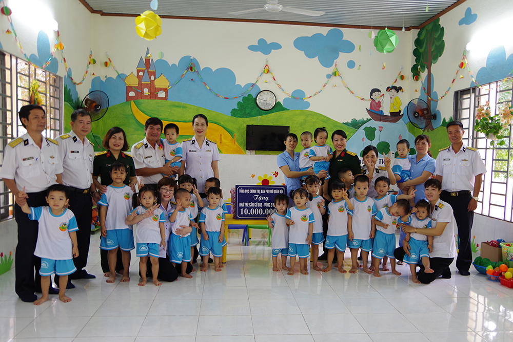 Ban Phụ nữ Quân đội tặng quà Nhà trẻ Căn cứ 696