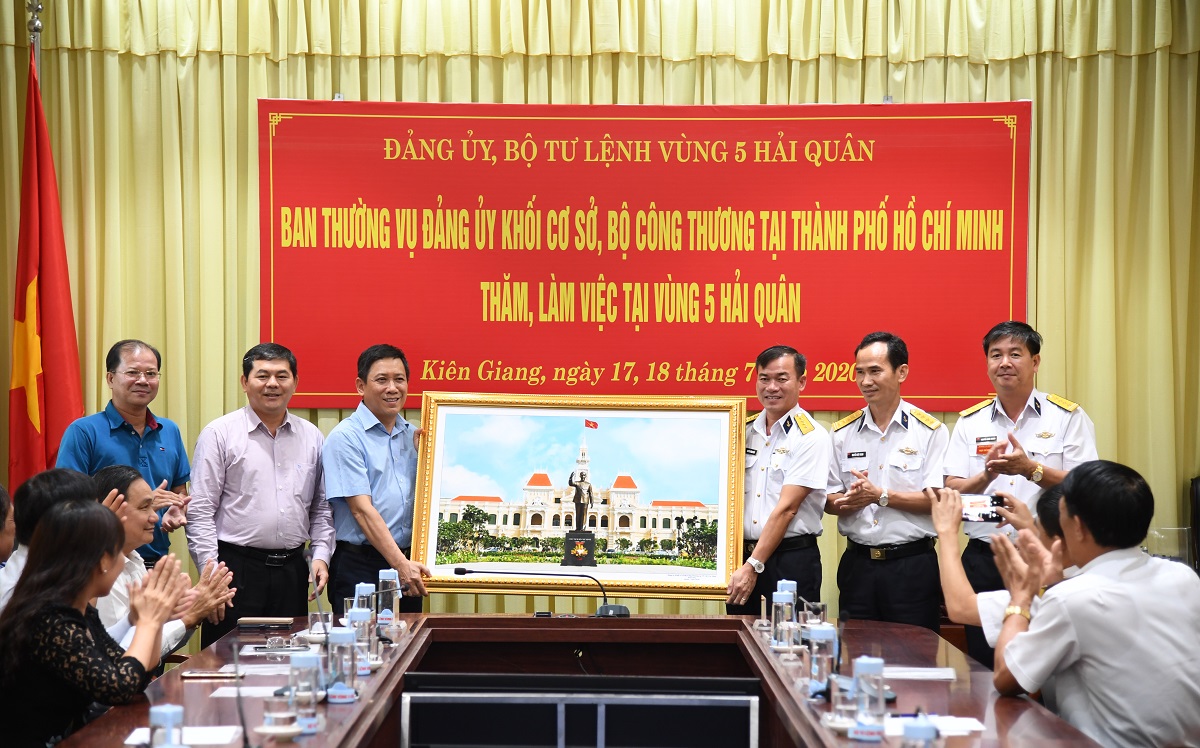 Ngày 17 và 18-7, tại huyện đảo Phú Quốc, tỉnh Kiên Giang, Đoàn công tác Ban Thường vụ Đảng ủy khối cơ sở, Bộ Công thương tại TP. Hồ Chí Minh do đồng chí Trần Xuân Điền, Bí thư Đảng ủy khối cơ sở làm trưởng đoàn đến thăm, làm việc với Vùng 5 Hải quân. Đại tá Nguyễn Đăng Tiến, Bí thư Đảng ủy, Chính ủy Vùng 5 chủ trì tiếp đoàn.
