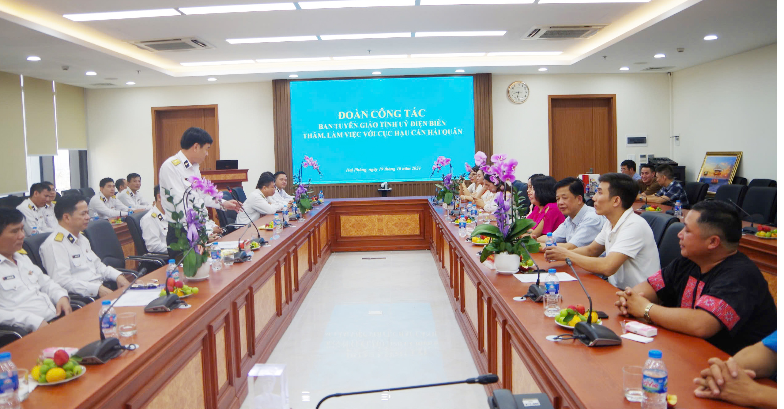 Ngày 19/10, tại Hải Phòng, đoàn công tác của Ban Tuyên giáo Tỉnh ủy Điện Biên do đồng chí Lò Thị Minh Phượng, Ủy viên Ban Thường vụ, Trưởng ban Tuyên giáo Tỉnh ủy dẫn đầu đã đến thăm, làm việc với Cục Hậu cần Hải quân.