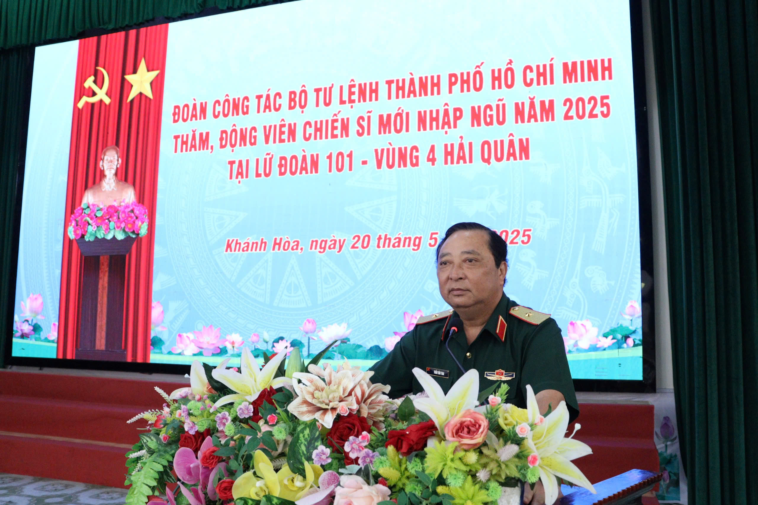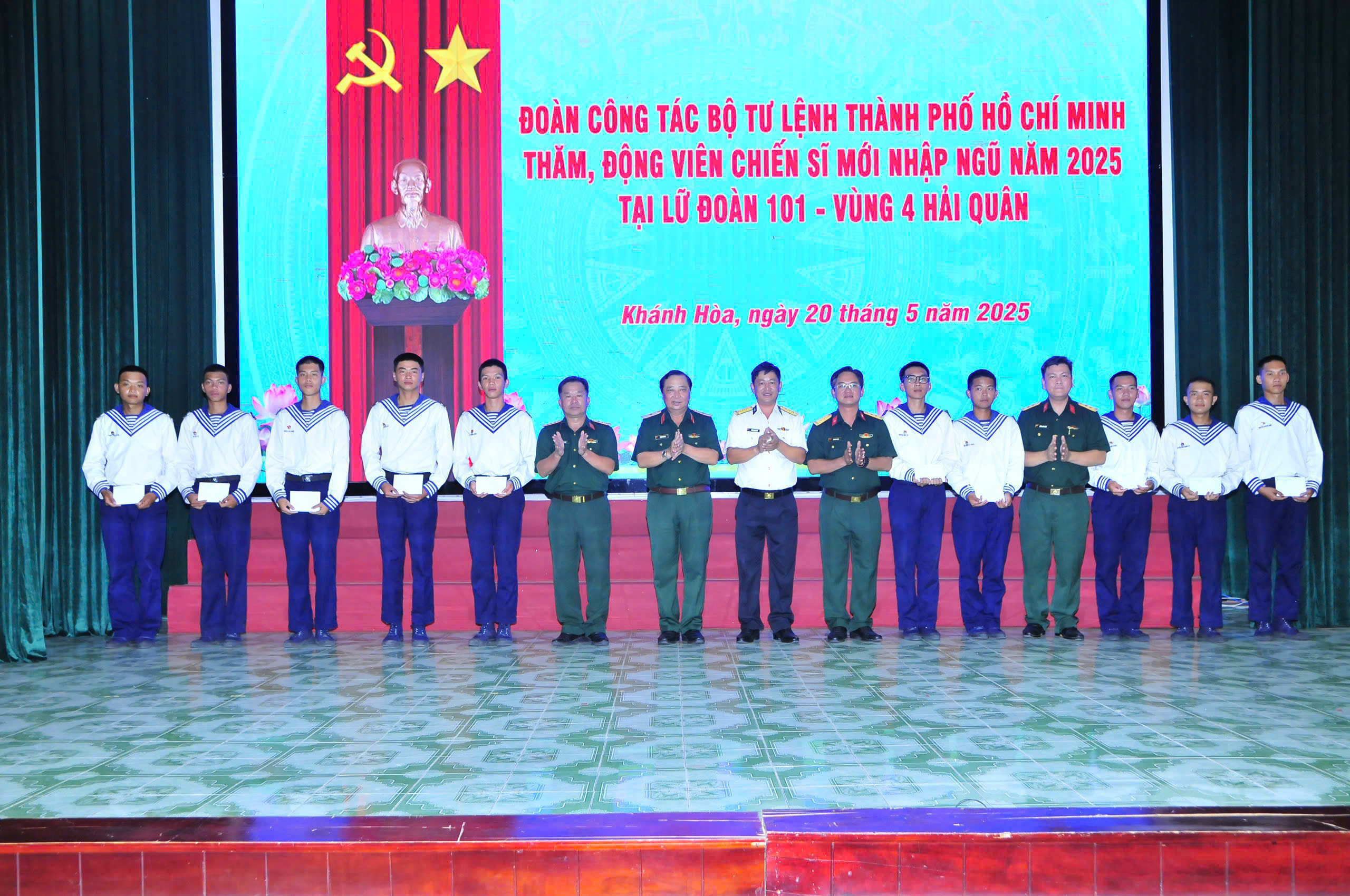 Ngày 20/5, tại xã Cam Thành Bắc, huyện Cam Lâm, tỉnh Khánh Hòa, Lữ đoàn 101, Vùng 4 Hải quân tổ chức đón đoàn cán bộ Bộ Tư lệnh TP. Hồ Chí Minh đến thăm và động viên chiến sĩ mới là con em địa phương huấn luyện tại đơn vị.