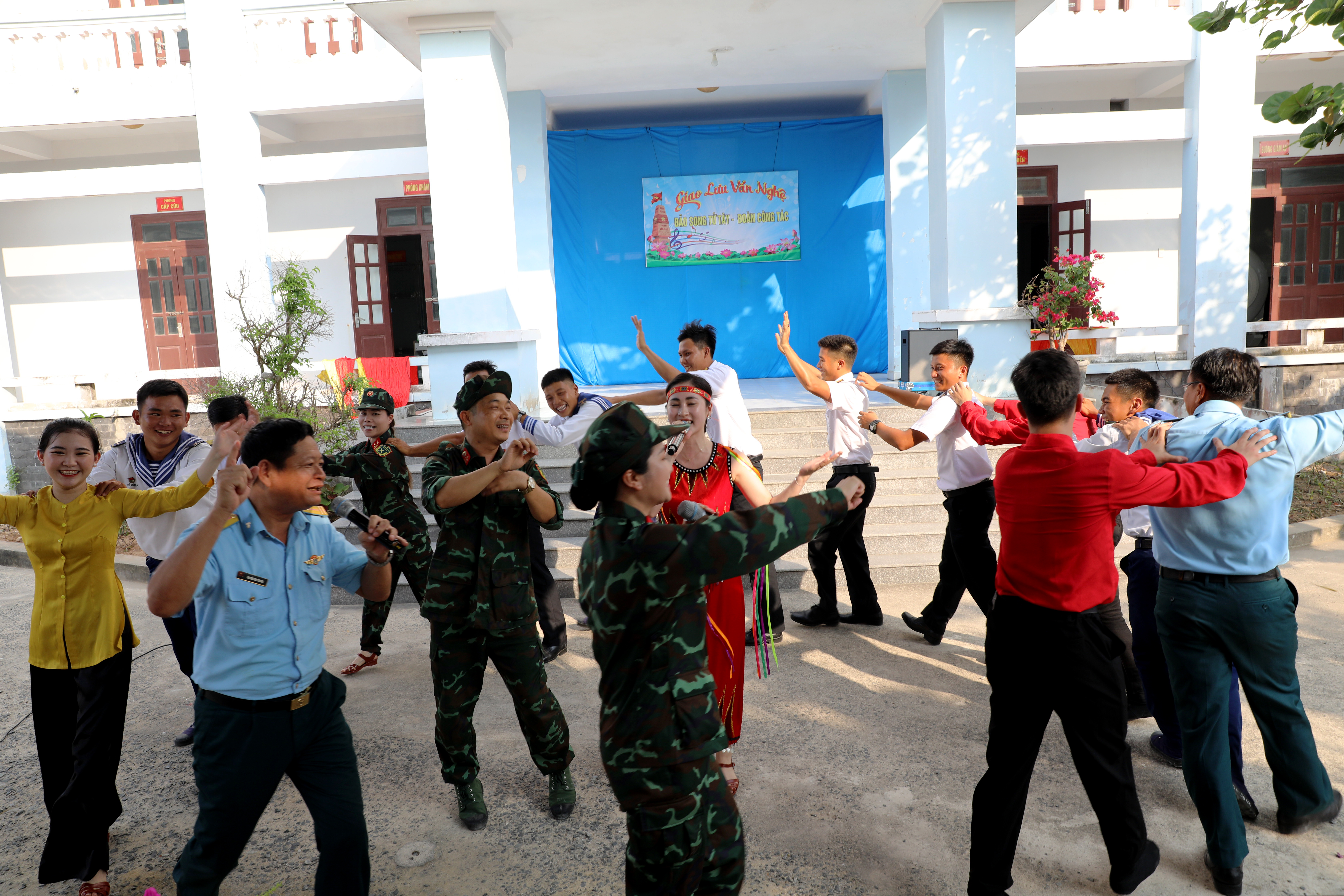 Giao lưu văn nghệ giữa thành viên đoàn công tác với cán bộ, chiến sĩ đảo Song Tử Tây