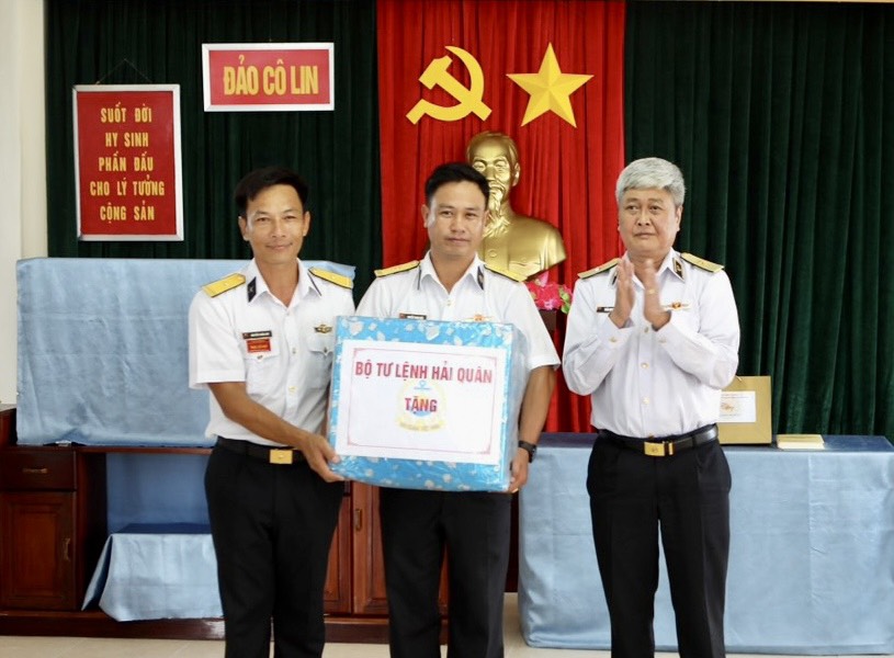 Chuẩn Đô đốc Trần Ngọc Quyết, Phó Tham mưu trưởng Hải quân tặng quà cán bộ, chiến sĩ đảo Cô Lin
