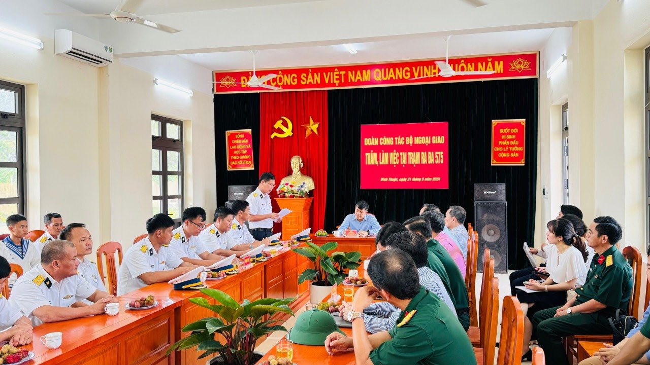 Chiều 31/5, tại huyện đảo Phú Quý, tỉnh Bình Thuận, đoàn công tác của Bộ Ngoại giao do Thứ trưởng thường trực Nguyễn Minh Vũ làm trưởng đoàn đã đến thăm và làm việc với Trạm ra đa 575, Trung đoàn 451, Vùng 4 Hải quân.