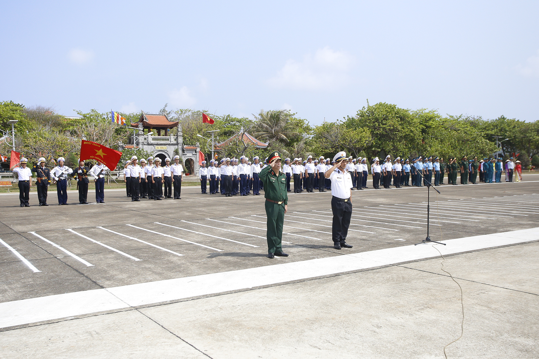 Đoàn công tác thực hiện nghi lễ chào cờ cùng quân dân thị trấn Trường Sa