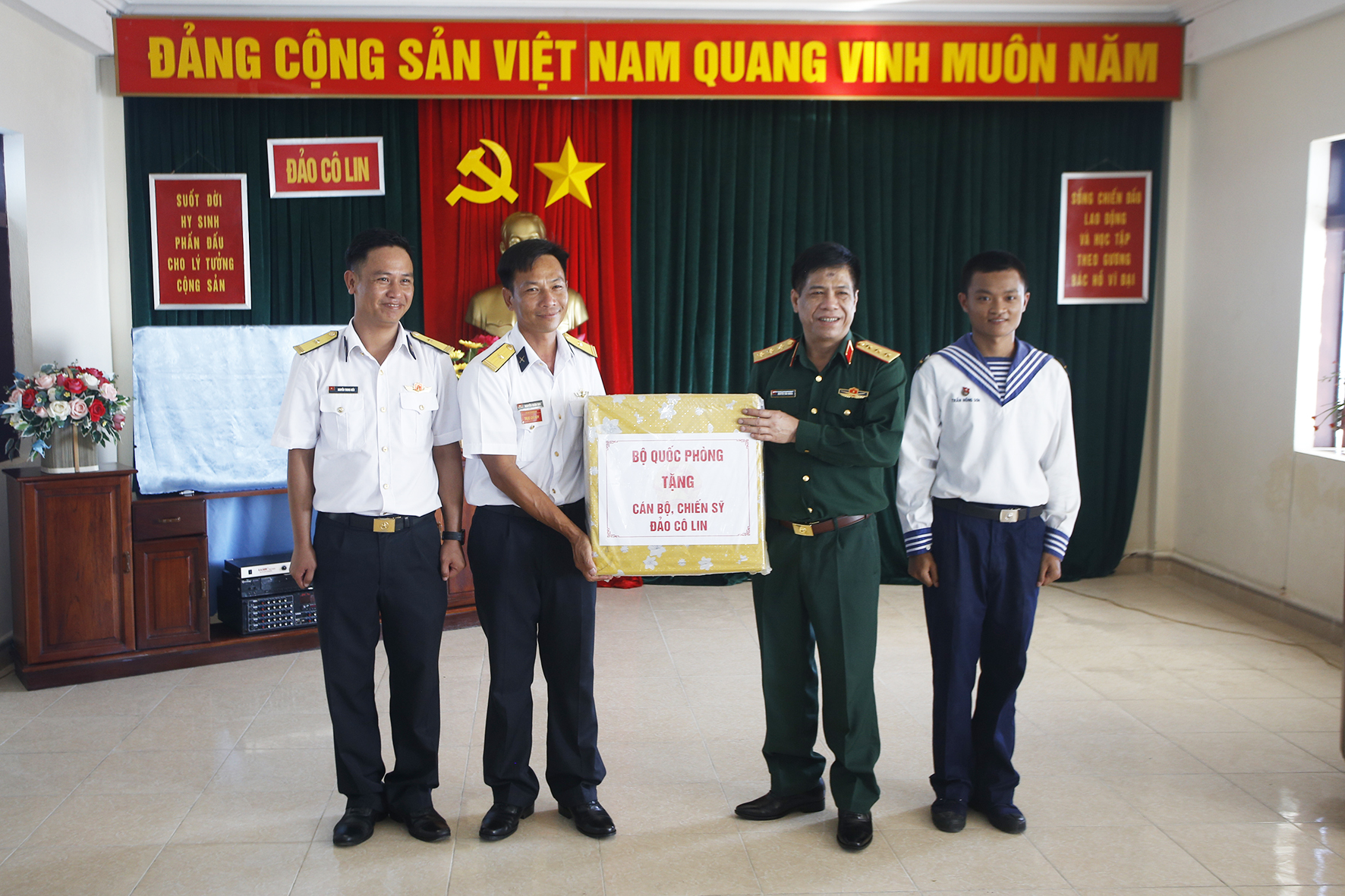 Dịp này, đoàn công tác cũng đã thăm, động viên và trao tặng nhiều phần quà ý nghĩa của các cơ quan, đơn vị gửi tới quân, dân và các lực lượng đang làm nhiệm vụ trên biển, đảo. Đây là sự quan tâm to lớn của thủ trưởng Bộ Quốc phòng, là tình cảm nồng ấm của cán bộ, chiến sĩ toàn quân dành cho quân và dân ở nơi đầu sóng, ngọn gió.