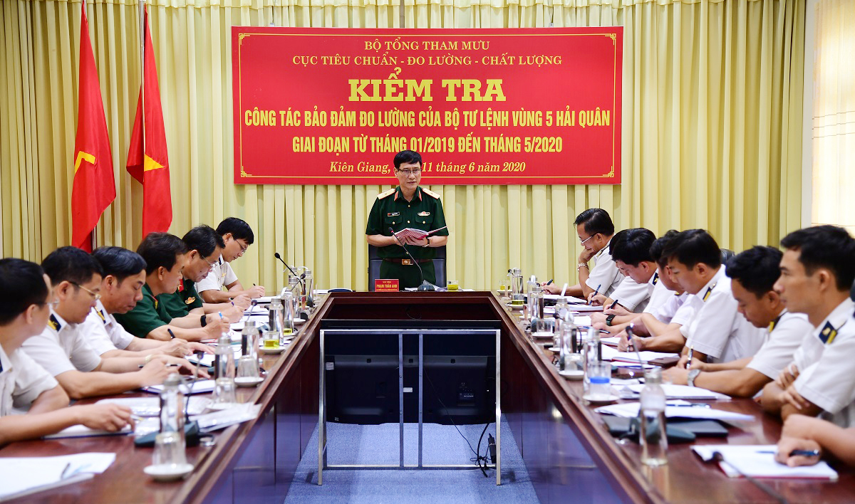 Ngày 11-6, tại huyện đảo Phú Quốc, tỉnh Kiên Giang, đoàn công tác của Bộ Tổng Tham mưu do Thiếu tướng Phạm Tuấn Anh, Cục trưởng Cục Tiêu chuẩn-Đo lường-Chất lượng làm trưởng đoàn đã đến kiểm tra công tác bảo đảm đo lường tại Vùng 5 Hải quân.