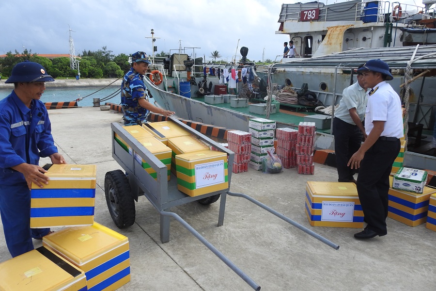 Cũng trong dịp này, đoàn công tác đã đến thăm, động viên và tặng 23 phần quà cho các lực lượng ở đảo Sinh Tồn, Tốc Tan, Núi Le và 7 hộ dân đang sinh sống trên đảo Sinh Tồn.