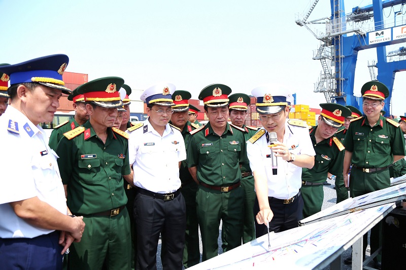 Cùng tham gia đoàn công tác có đại diện các cơ quan, khoa, hệ và học viên đào tạo cao cấp ngắn hạn chỉ huy - tham mưu cấp chiến dịch, chiến lược khóa 49. Đại tá Bùi Sĩ Tuấn, Phó Tổng giám đốc Tổng công ty Tân cảng Sài Gòn chủ trì đón đoàn.